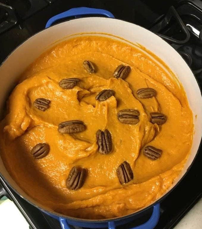 Family has expanded and declined. Traditions evolve. My mother was fond of an orange infused Thanksgiving inspired by Marjorie Kinnan Rawlings’s Cross Creek about her life in Alachua County, Florida. The author had an orange grove and explored ways to use citrus in many recipes. Although Rawling’s book, The Yearling, won a Pulitzer Prize for fiction, I found Cross Creek, which I read during the pandemic, troubling - as her treatment of young underage African American servants was anything but admirable. I put the book down, but I still enjoy zesty orange in cranberry sauce and in sweet potatoes which I cook, mash with egg, milk, orange juice and zest, spices and pecans (no marshmallows) and bake as my mother did.